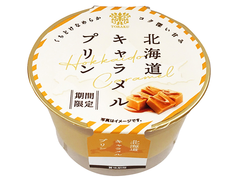 北海道キャラメルのコク深い甘みをなめらかなくちどけで堪能できるプリンです。